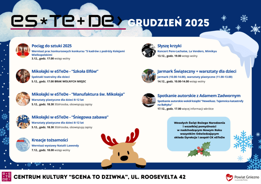 To co wydaje się istotnie Centrum ma już kilka cyklicznych imprez o szerokim wymiarze, takich jak choćby Festiwal Wyobraźni, podczas którego gościło między innymi: Klinikę Lalek, Teatr Ósmego Dnia, Vavamuffin i Pablopavo, Raz Dwa Trzy, Stanisława Soykę i wielu innych. Ponadto dobrą sławą cieszą się Koncerty dla Niepodległej – organizowane 11 listopada, w ramach których wystąpili: Przemysław Gintrowski, Łukasz Kuropaczewski, Joszko Broda i Tadeusz Woźniak. W salach prób grają takie zespoły jak Fan Art – zwycięzca Wielkopolskich Rytmów Młodych – Jarocin 1972, Bapu, OWW czy Big UP! Laureat Ostróda Reggae Festival 2013. Działa także szereg sekcji i pracowni oraz eSTeDe STUDIO. Jako instytucja kultury Centrum otwarte jest na współpracę i współdziałanie z tymi, którym bliska jest kultura i działania w jej obszarze.