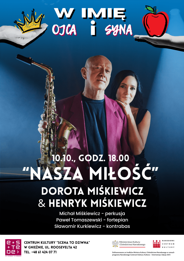 Centrum Kultury „Scena to dziwna” zaprasza na „W imię ojca i syna”! W ramach realizowanego projektu odbędą się warsztaty dla ojców i synów, wyjątkowe prelekcje i koncert rodziny Miśkiewiczów! Z okazji tysięcznej rocznicy koronacji Bolesława Chrobrego i Mieszka II Centrum Kultury „Scena to dziwna” planuje organizację festiwalu „W imię ojca i syna”.