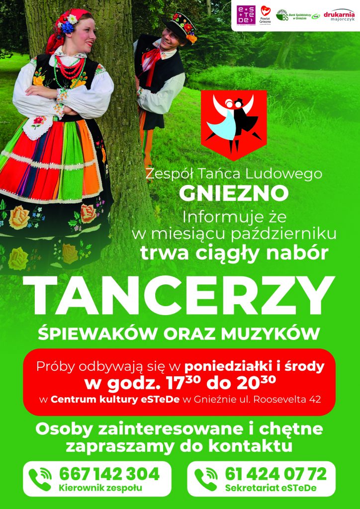 Hej ho! Zespół Tańca Ludowego „Gniezno” poszukuje uzdolnionych, gotowych do rozpoczęcia przygody z tańcem ludowym! Jeżeli interesujecie się kulturą ludową i pasjonuje Was taniec, to jest miejsce dla Was! Zapraszamy do kontaktu telefonicznego.