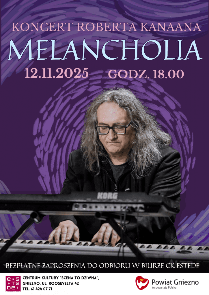 Centrum Kultury „Scena to dziwna” zaprasza na koncert Roberta Kanaana pt. „Melancholia – z tęsknoty za światłem”, który odbędzie się 12 listopada o godz. 18.00 w sali widowiskowej CK eSTeDe. Bezpłatne zaproszenia do odbioru w CK eSTeDe.