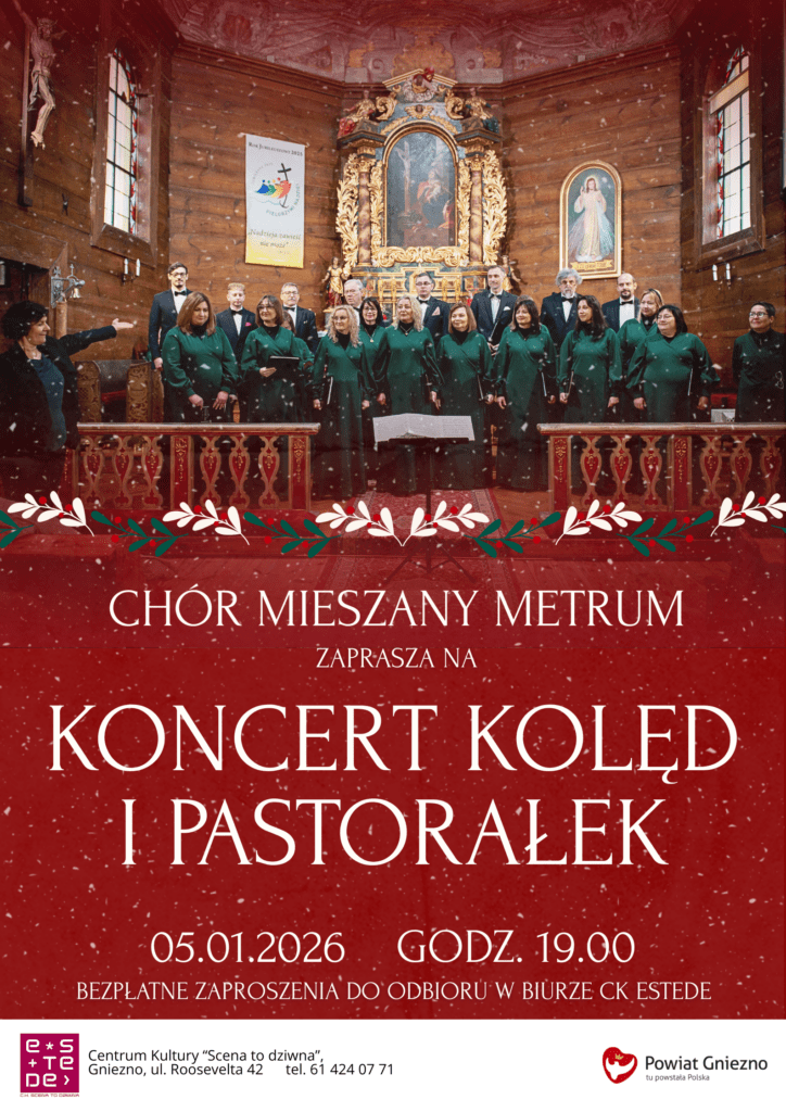 Centrum Kultury „Scena to dziwna” zaprasza na noworoczny koncert Chóru Mieszanego Metrum! Jedna z najstarszych gnieźnieńskich grup chóralnych pod batutą Barbary Krenz zaśpiewa przekrój najpiękniejszych kolęd i pastorałek!